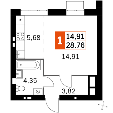 Квартира №68, Дом 2 (Секции 3, 4, 5) (Мартемьяново Клаб)