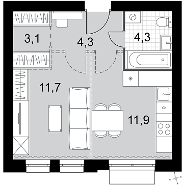 Квартира №103, Дом 3 (Апрелевка Клаб)